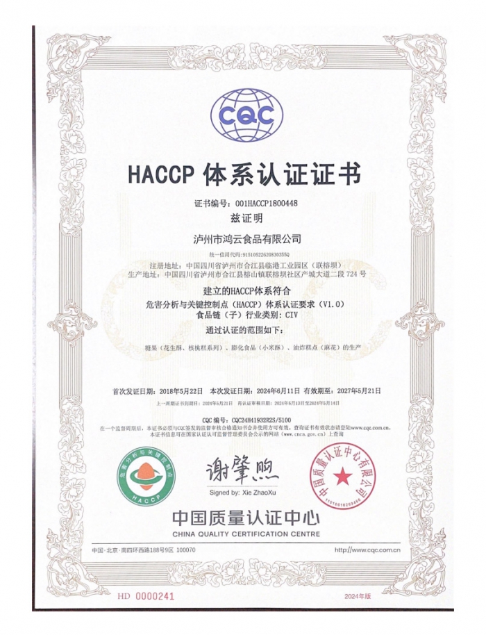 HACCP體系認(rèn)證證書(中文)