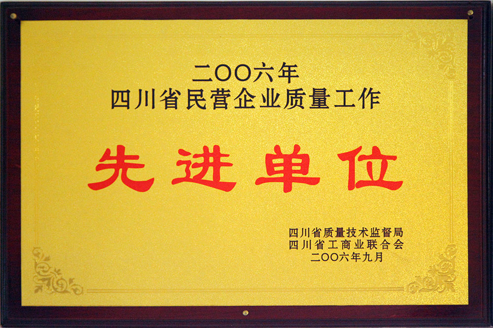四川省民營企業(yè)質(zhì)量工作先進單位